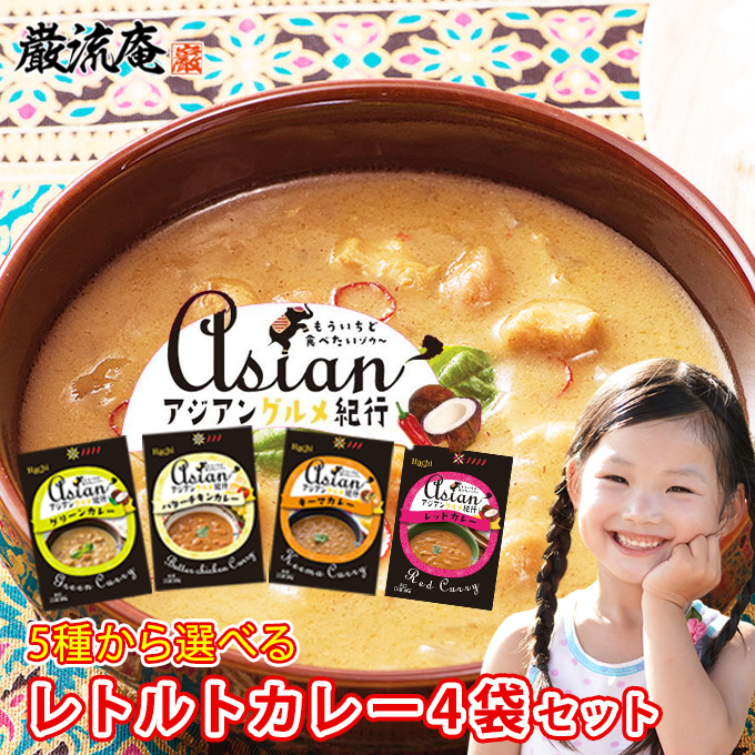 5種から選べる レトルトカレー 4袋セット アジアングルメ紀行シリーズ レトルトカレー 送料無料 1000円 セット 詰め合わせ グリーンカレー レトルト バターチキンカレー キーマカレー レッドカレー タイカレー