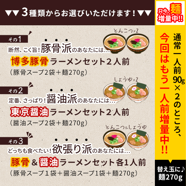 商品名:選べるラーメン食べ比べセット博多豚骨ラーメン&東京醤油ラーメン 2-3人前